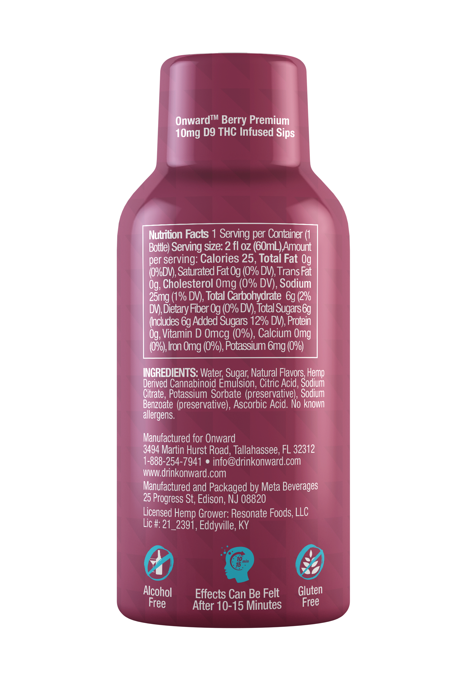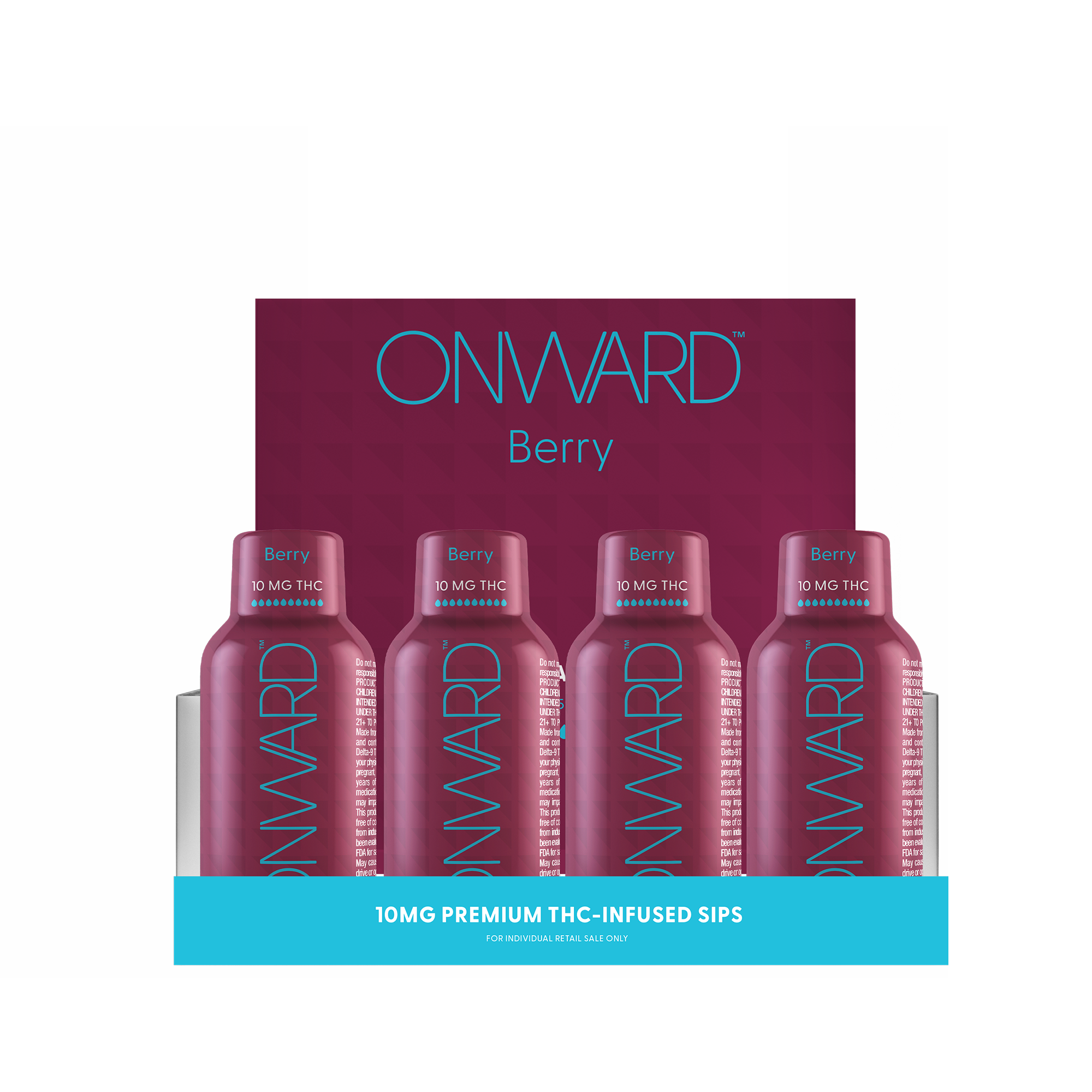 ONWARD™ Berry SIPS deliver a smooth 10mg THC experience in a compact 2oz bottle — the perfect unwind for evenings, after work, or mellow social moments. No fuss, just premium flavor that's clean and uplifting. Available in a rich, raspberry-forward flavor that's perfect for anytime.