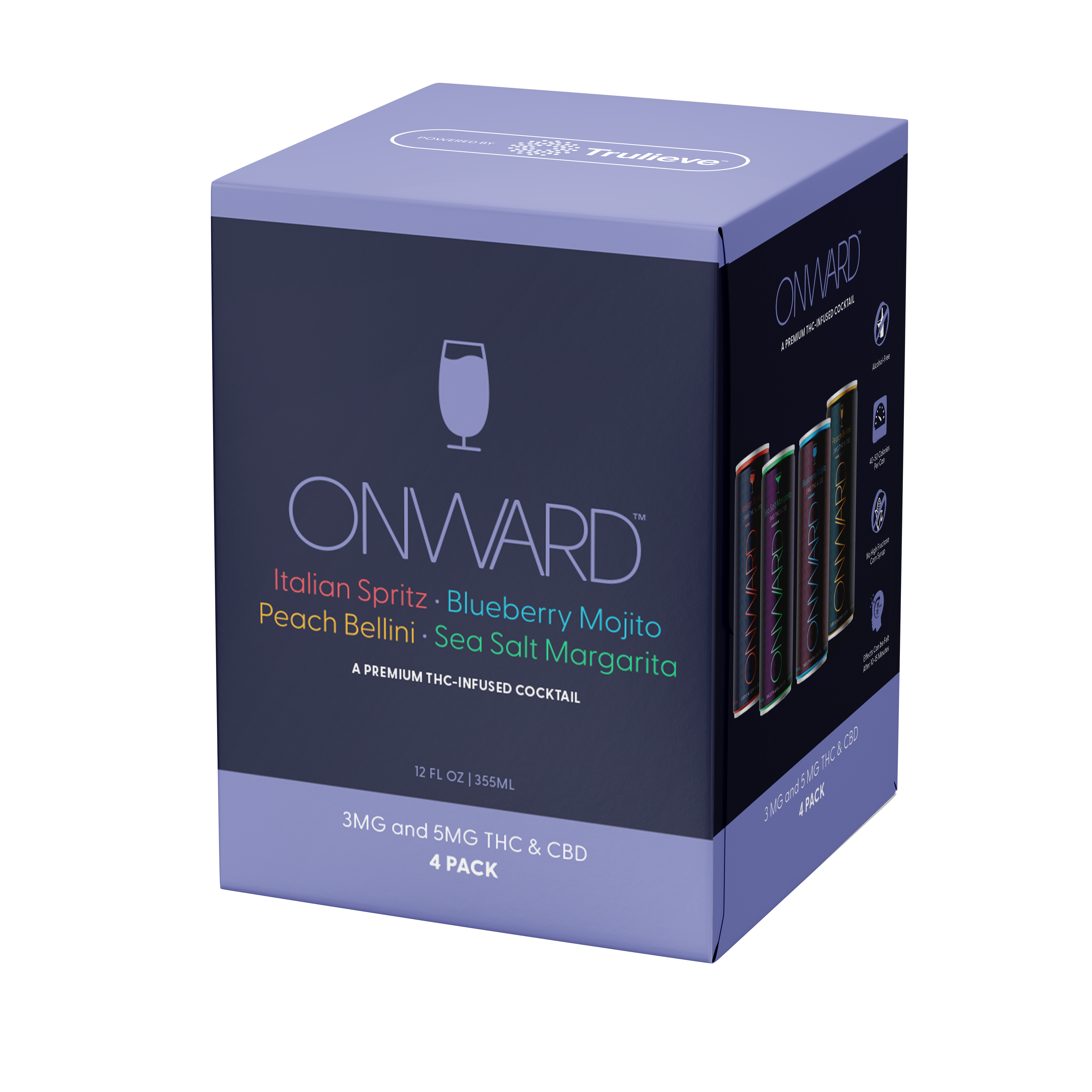 Why choose one when you can try our 3 & 5MG favorites! The Onward Variety Pack brings together four of our premium, non-alcoholic THC & CBD cocktails—Blueberry Mojito, Sea Salt Margarita, Italian Spritz, and Peach Bellini—so you can sip your way through a spectrum of sophisticated flavors.